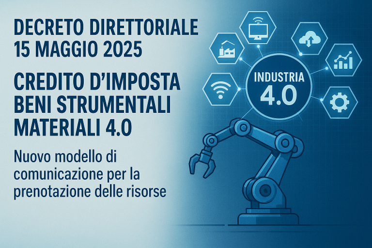 È stato pubblicato il decreto direttoriale del 15 maggio 2025 che introduce un nuovo modello di comunicazione per accedere al credito d’imposta legato agli investimenti in beni strumentali materiali 4.0.